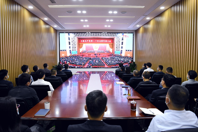 10月16日上午,城發(fā)公司黨支部組織全體員工收聽觀看中國共產黨第二十次全國代表大會開幕會。音樂響起,全體起立,大家齊唱國歌,現(xiàn)場熱血沸騰。大家聚精會神,全程認真聆聽了習近平總書記在中國共產黨第二十次全體大會上的報告。