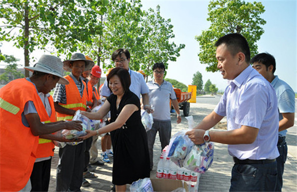 慰問中,丁琦對室外作業(yè)人員在高溫下堅(jiān)持工作,為園區(qū)建設(shè)發(fā)展所付出的辛勤勞動(dòng)表示感謝,并叮囑他們在工作中要做好防暑工作,注意身體狀況,避開午后高溫時(shí)段,更有效率地開展工作。