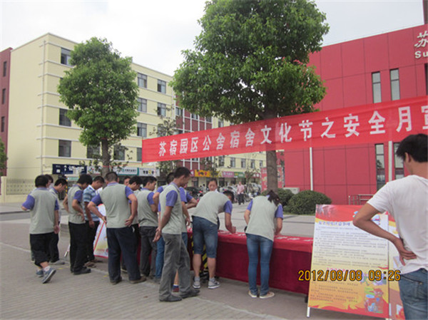 8月8日上午,在園區(qū)人才市場(chǎng)廣場(chǎng)開(kāi)展“園區(qū)公舍宿舍文化節(jié)”活動(dòng),本次活動(dòng)通過(guò)展板、簽名等形式向公舍廣大住宿職工宣講消防安全及安全用電知識(shí),此次活動(dòng)為即將開(kāi)展的消防演練奠定了基礎(chǔ)。