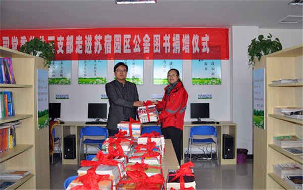 11月17日上午,蘇大教服集團(tuán)黨委物業(yè)三支部陳彤彤書記一行走進(jìn)園區(qū)公舍開展圖書捐贈(zèng)活動(dòng),建發(fā)公司副總經(jīng)理張?bào)K同志參加了此次活動(dòng)。