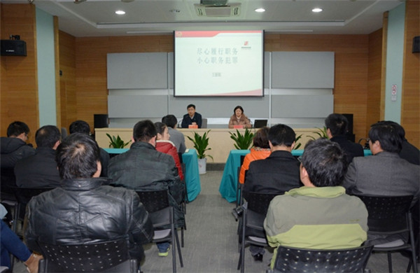 12月26日,開發(fā)公司邀請宿城區(qū)檢察院預(yù)防職務(wù)犯罪科科長王麗娟作《盡心履行職務(wù),小心職務(wù)犯罪》專題講座,園區(qū)黨工委委員、管委會副主任、開發(fā)公司總裁陸志剛參加講座。