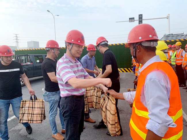 8月21日下午,開發(fā)公司副總裁劉建華帶隊慰問市政工程項目現(xiàn)場工人,給他們送去毛巾、香皂、洗發(fā)水等防暑降溫用品,感謝他們對園區(qū)市政工程的建設(shè)作出的貢獻。
