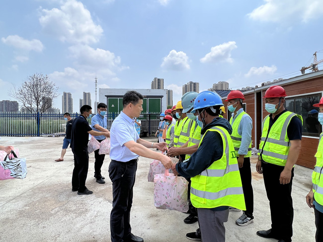 為切實維護高溫期間建筑工人身體健康,保障建筑工人在生產過程中的安全與健康,切實做好安全文明施工,確保工程項目順利推進。7月1日上午,總經理劉建華帶隊慰問建設工程施工現(xiàn)場工人,給他們送去毛巾、香皂、洗發(fā)水等防暑降溫用品,感謝他們對園區(qū)工程建設作出的貢獻。