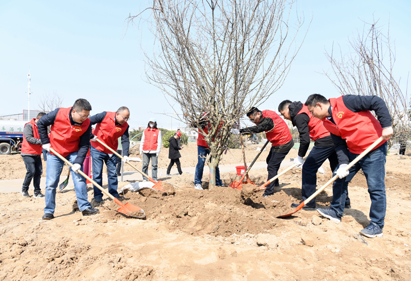 種一棵小樹,綠一方凈土,多一片綠葉,多一份溫馨。3月12日城發(fā)公司黨支部組織志愿者來到園區(qū)蘇悅公園開展主題黨日暨義務(wù)植樹活動,大家分工合作,有的挖坑、有的扶苗、有的填土、有的澆水......場面繁忙有序,很快一棵棵希望的樹苗在園區(qū)的大地上“安家落戶”。