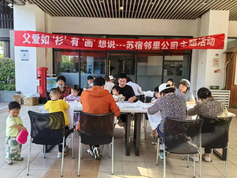 父愛如山,厚重?zé)o言;父愛如海,寬廣無垠。為了表達(dá)對父親的感激和尊重,弘揚(yáng)家庭教育價值觀,倡導(dǎo)和諧親子關(guān)系,6月7日下午,蘇宿鄰里公司在明日鄰里中心中庭開展“父愛如‘衫’ 有‘畫’想說”主題活動。