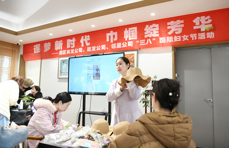 在手工制作環(huán)節(jié),女職工們化身“匠心設計師”,運用絲帶、花草等材料精心制作專屬禮帽?,F場學會運用各自的創(chuàng)意巧思,呈現出風格各異的作品。