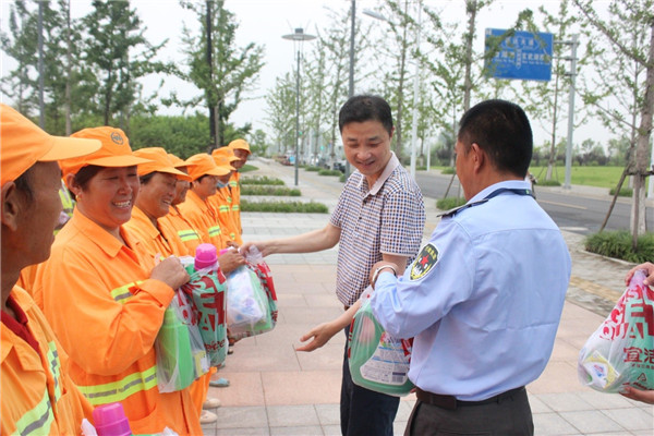 6月29日上午,園區(qū)黨工委委員、管委會(huì)副主任、規(guī)劃建設(shè)局局長(zhǎng)許紹杰帶隊(duì),親切慰問了奮戰(zhàn)在一線的城市維護(hù)作業(yè)人員,給他們送去了夏日里的問候和黨的關(guān)懷,感謝他們?yōu)閳@區(qū)的整潔、優(yōu)美城市環(huán)境所作出的貢獻(xiàn)。