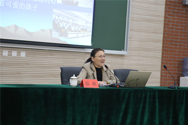 駱敏從“做教師的意義、如何成為學(xué)生心目中的好老師和如何成為大家心中的好老師”三個(gè)方面給老師們上了一堂別開生面的專業(yè)發(fā)展課。駱敏指出,教師應(yīng)該具有高尚奉獻(xiàn)、完善自我的意識(shí),特別要從細(xì)節(jié)方面、從學(xué)生的角度思考,開啟通向優(yōu)秀教師的通道。駱敏認(rèn)為學(xué)生心目中的好老師應(yīng)該是一名演說家、幽默大師,具有獨(dú)特的教學(xué)藝術(shù),對(duì)孩子能夠真誠贊美、懂得尊重學(xué)生、真心關(guān)愛學(xué)生。作為好老師,應(yīng)該修德、修志、修學(xué)、修能、修性,有欣賞的眼光,感恩的心態(tài)。